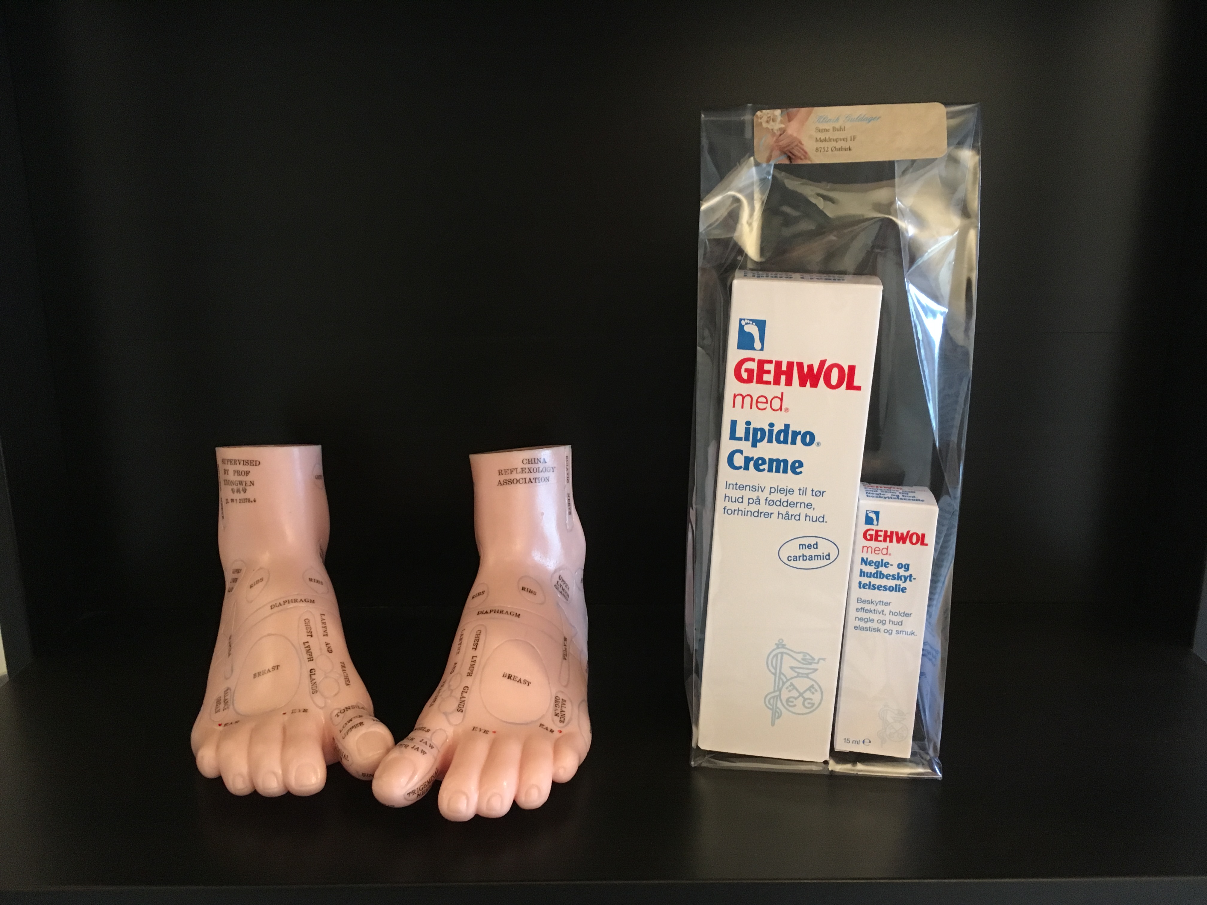 Du kan vinde enten zoneterapi, fodplejebehandling eller creme og negleolie fra Gehwol