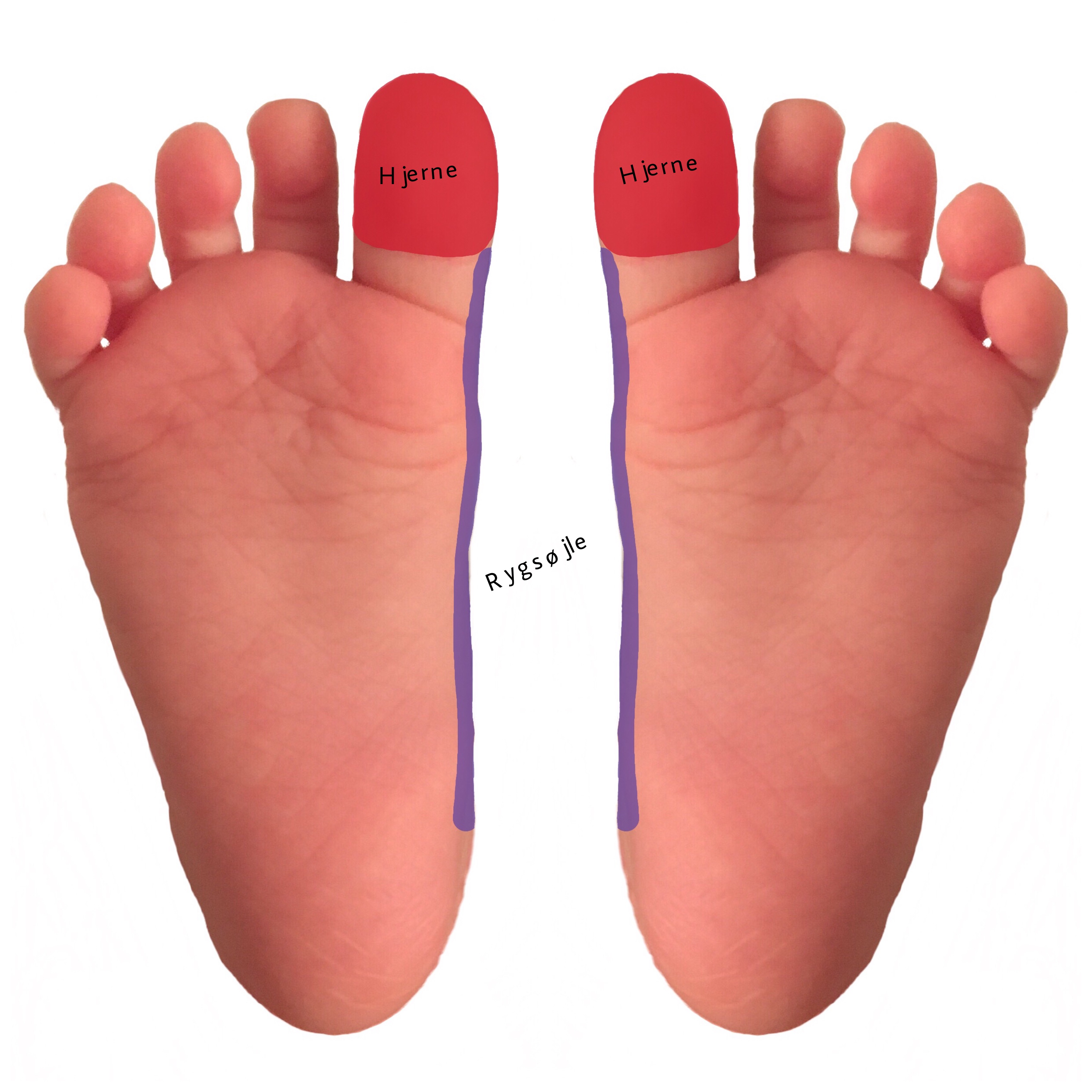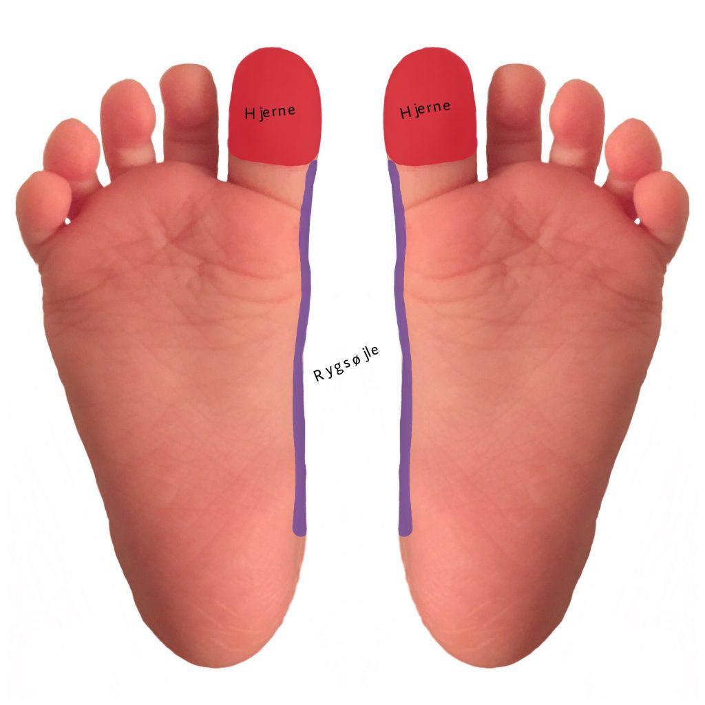 HJERNEN: Blommen af storetåen masseres godt med tommelfingere. Zonen er godt til at give ro i hovedet, hvis der har været en masse oplevelser i løbet af dagen.